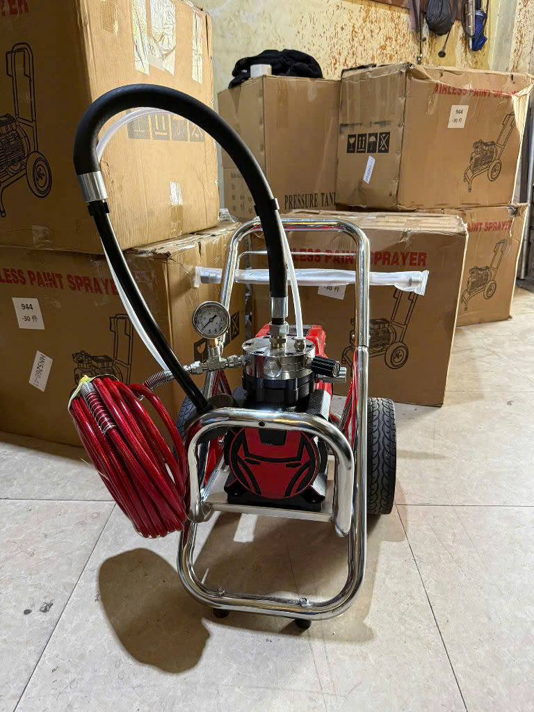 Toàn bộ thân máy phun sơn được làm từ thép không gỉ, có khả năng chịu lực và chống ăn mòn tốt. Hệ thống bơm sơn và đầu phun dễ tháo lắp, thuận tiện trong việc vệ sinh, bảo trì và thay thế phụ kiện.
